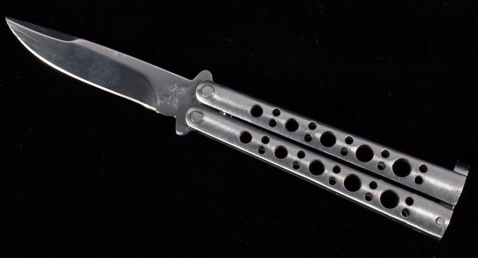 Butterfly knives also known as batanga knives have handles that rotate around the tang of the knife and conceal the blade when theyre closed.